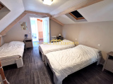 A l'étage, un palier donnant sur deux chambres et une salle d'eau avec douche, vasque et WC.