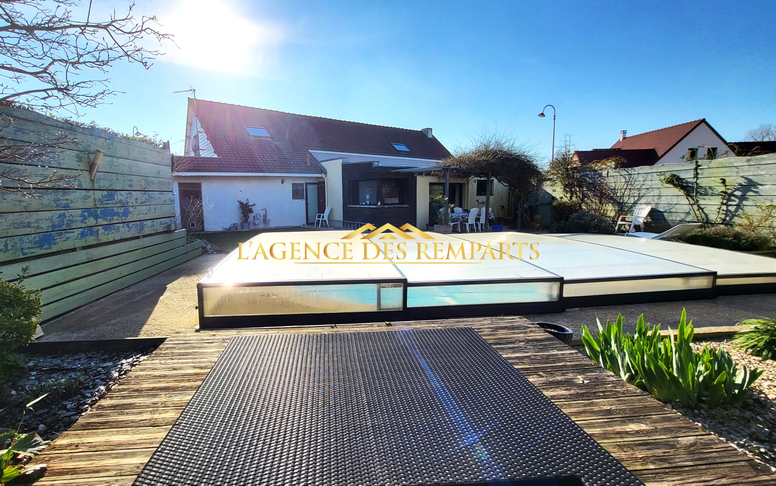 - vaste séjour traversant (52 m²) incluant l'espace cuisine aménagée et équipée "semi-pro", le tout ouvrant sur la terrasse, le jardin et la piscine dotée d'une couverture télescopique,